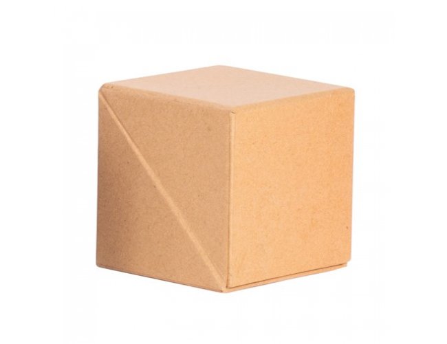 Bloco de anotações formato de cubo em papelão reciclado, contendo: