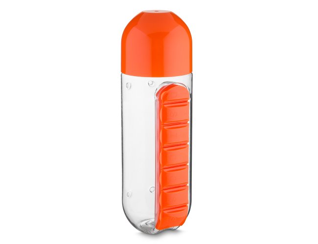 Garrafa plástica 600 ml com porta pílulas destacável,